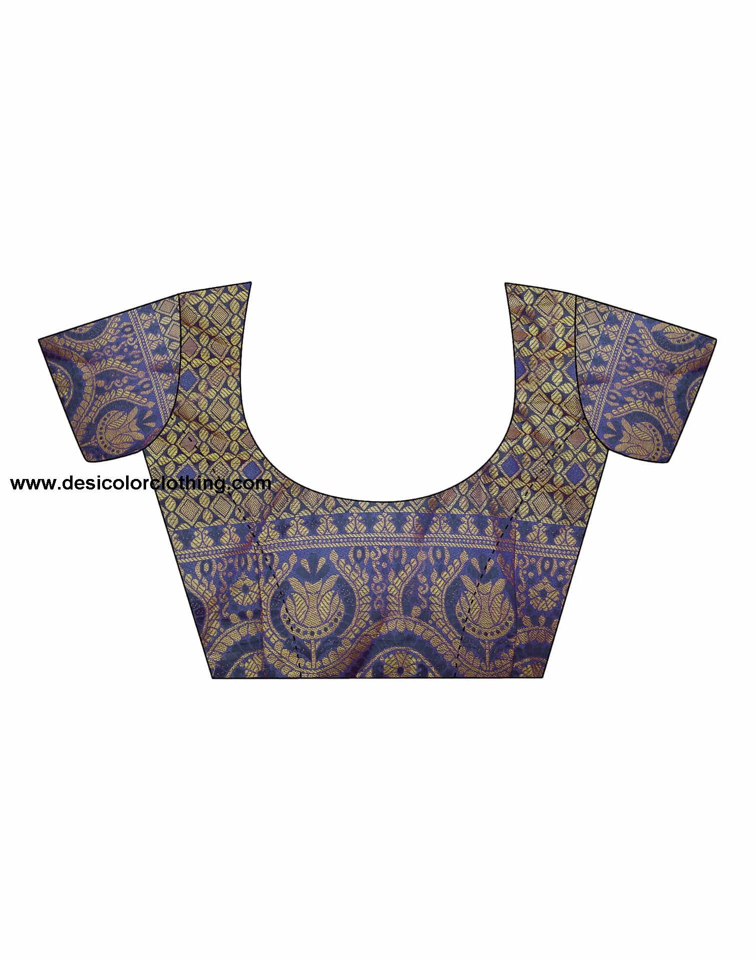 Saree Color:Red, Navy Blue, Golden Type:Banarasi