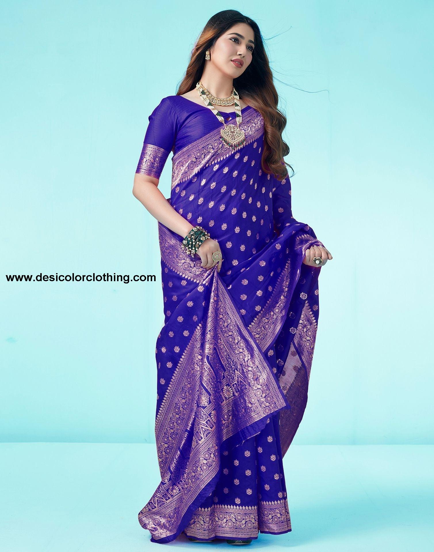 Blouse Color:Royal Blue Blouse Fabric:Poly Silk Blouse Length:0.80 Mtr Blouse Work:Plain, Jacquard Border Saree Color:Royal Blue, Gold Saree Fabric:Art Silk Saree Length:5.30 Mtr Saree Work:Banarasi Jacquard
