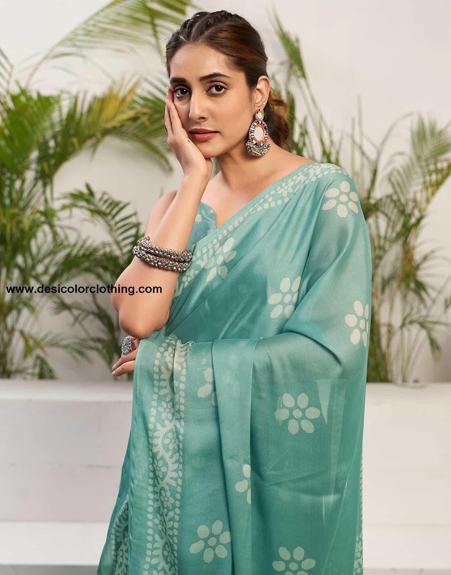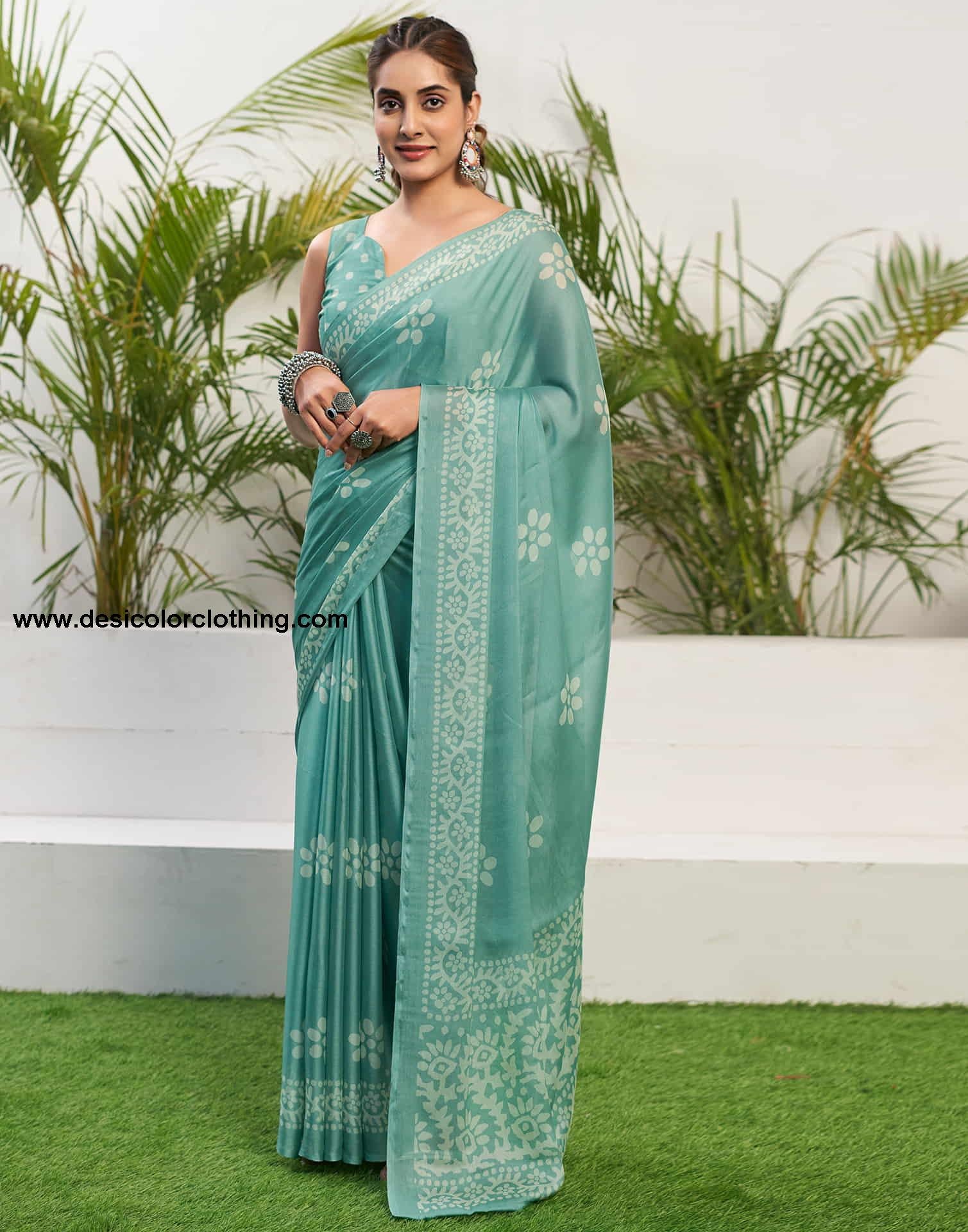 Saree Color:Soft Turquoise, White Type:Printed
