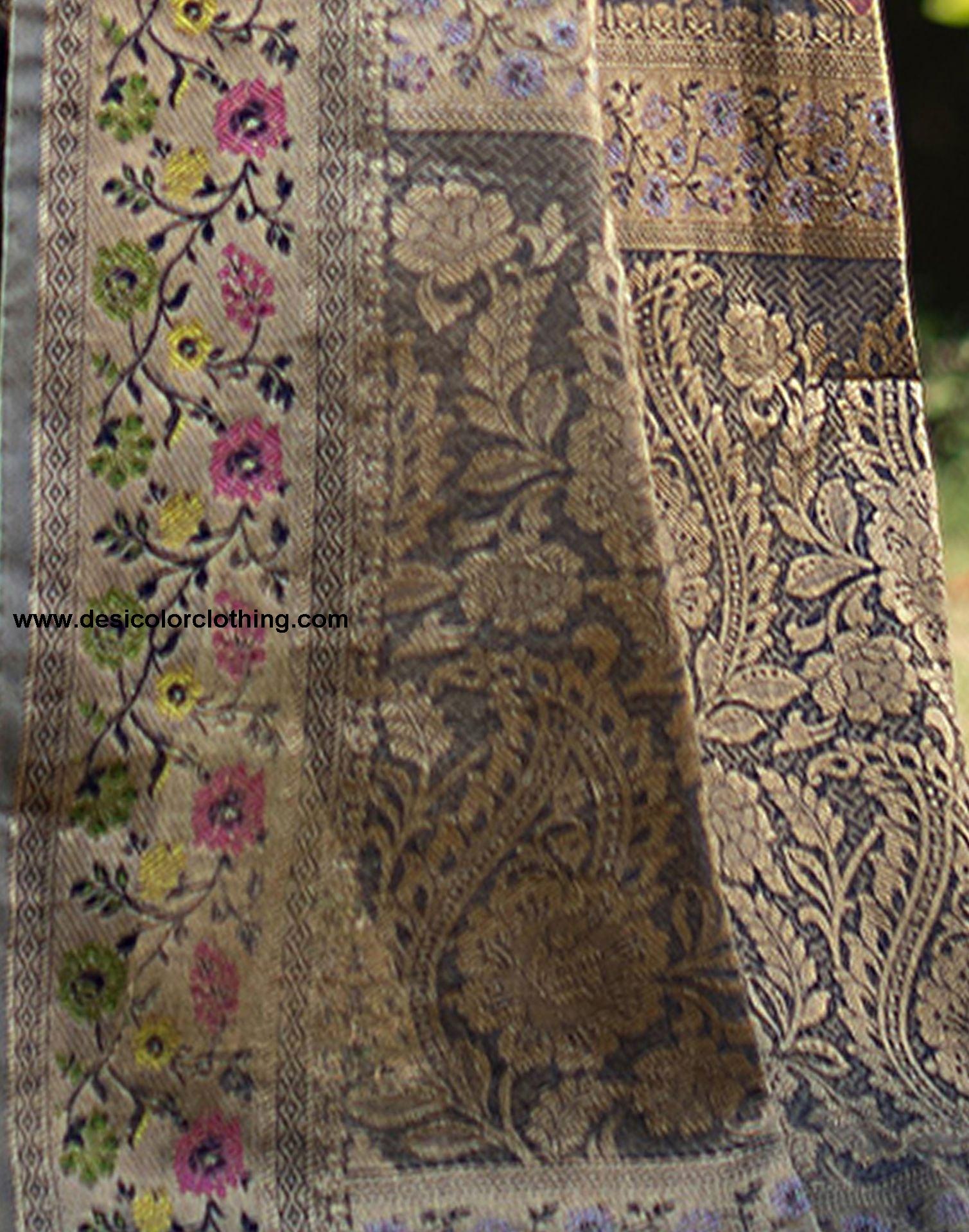Blouse Color:Steel Blue, Gold Blouse Fabric:Art Silk Blouse Length:0.80 Mtr Blouse Work:Jacquard Saree Color:Steel Blue, Multi Saree Fabric:Organza Saree Length:5.50 Mtr Saree Work:Jacquard, Tassel