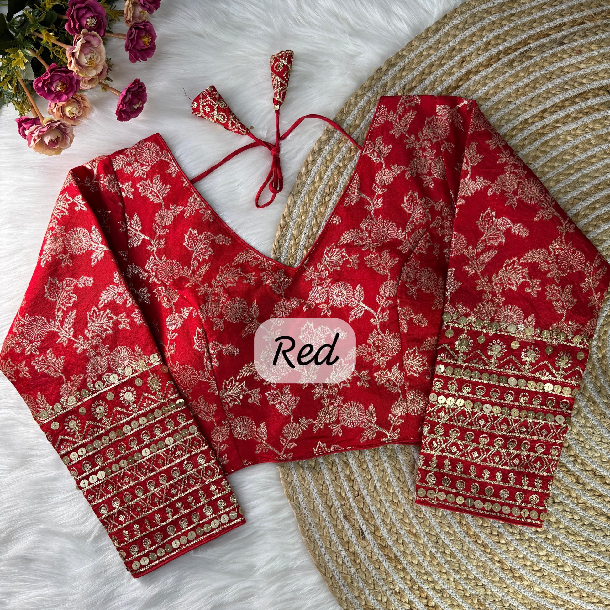 Discover the convenience and style of our ready-made blouses, tailored for a flawless fit and available in a variety of colors, patterns, and designs. Perfect for pairing with sarees, lehengas, or skirts, these blouses offer both comfort and elegance, ideal for weddings, parties, and festive events. Elevate your look instantly with our versatile, ready-to-wear blouses!