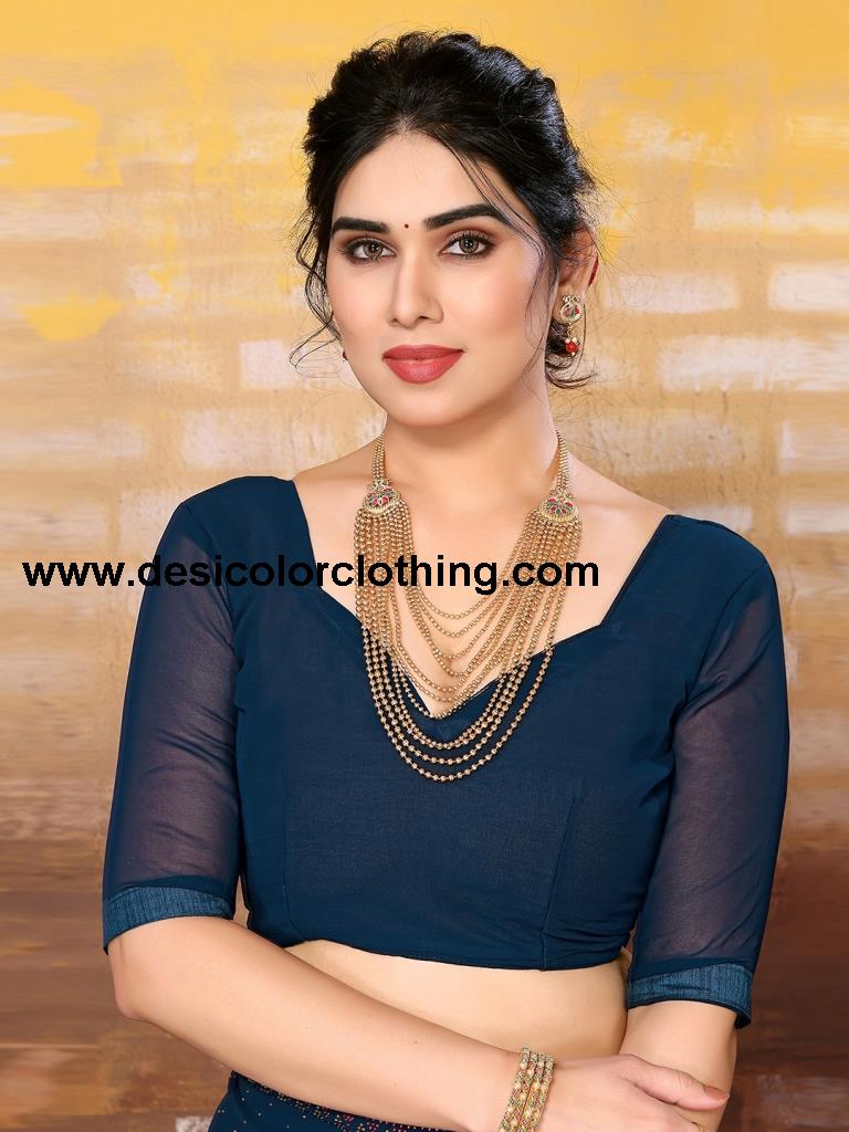 Blouse Color:Teal Blue Blouse Fabric:Georgette Blouse Length:0.70 Mtr Blouse Work:Dyed, Stone Work Saree Color:Teal Blue Saree Fabric:Georgette Saree Length:5.50 Mtr Saree Work:Dyed, Stone Work