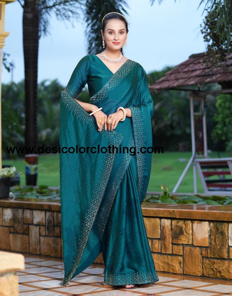 Blouse Color:Teal Blue Blouse Fabric:Georgette Blouse Length:0.80 Mtr Blouse Work:Plain, Hot Fixing Saree Color:Teal Blue Saree Fabric:Georgette Saree Length:5.40 Mtr Saree Work:Plain, Hot Fixing Type:Plain