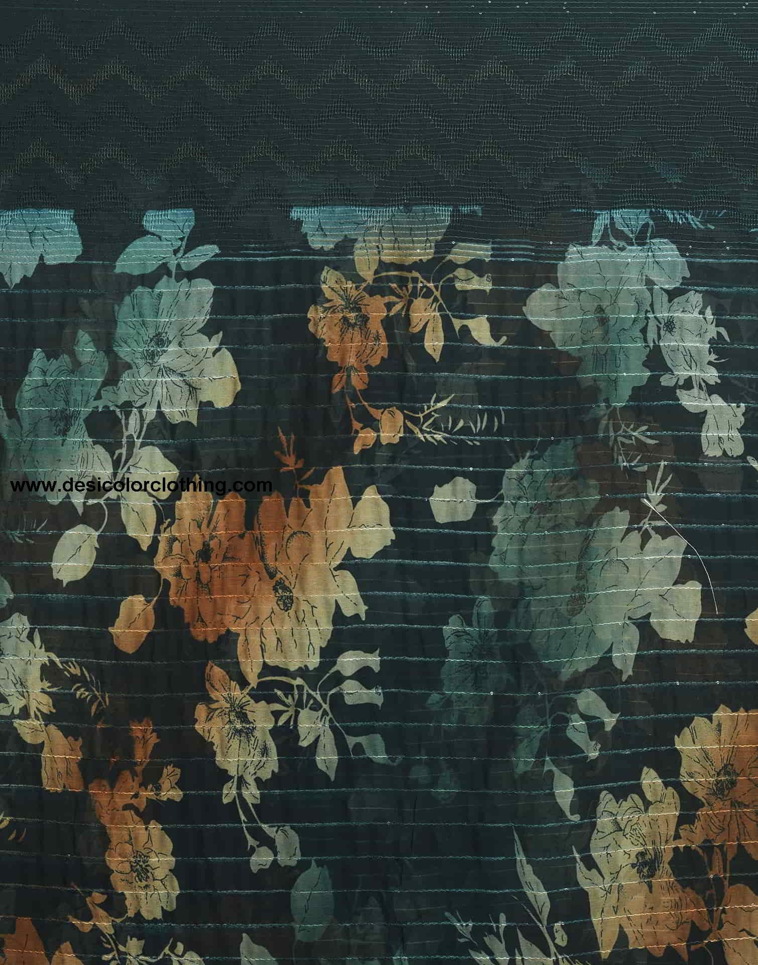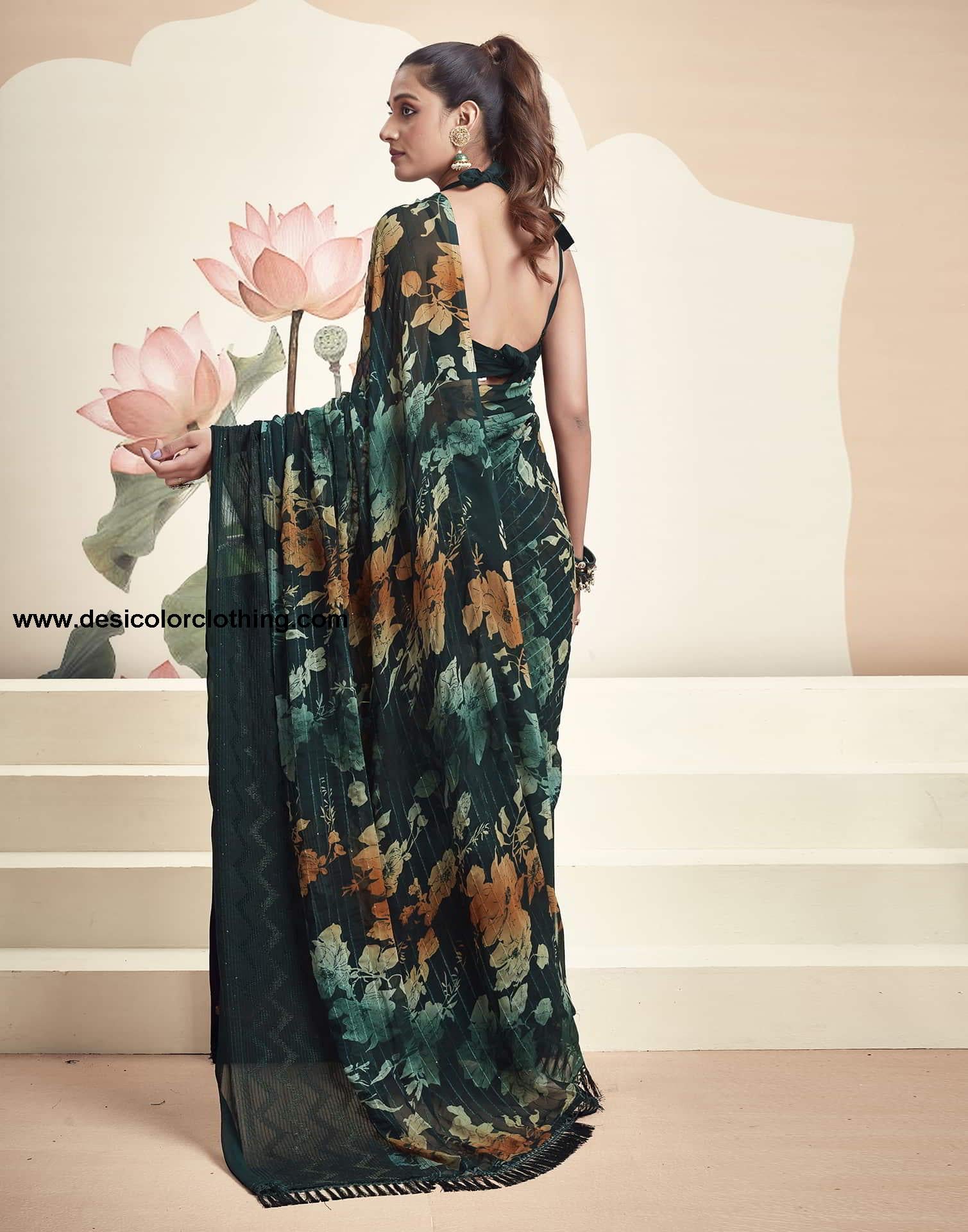 Blouse Color:Dark Rama Green Blouse Fabric:Bhagalpuri Silk Blouse Length:0.80 Mtr Blouse Work:Plain Saree Color:Rama Green, Multi Saree Fabric:Georgette Saree Length:5.50 Mtr Saree Work:Floral Printed, Sequence Work, Zari Work, Tassels Type:Sequence