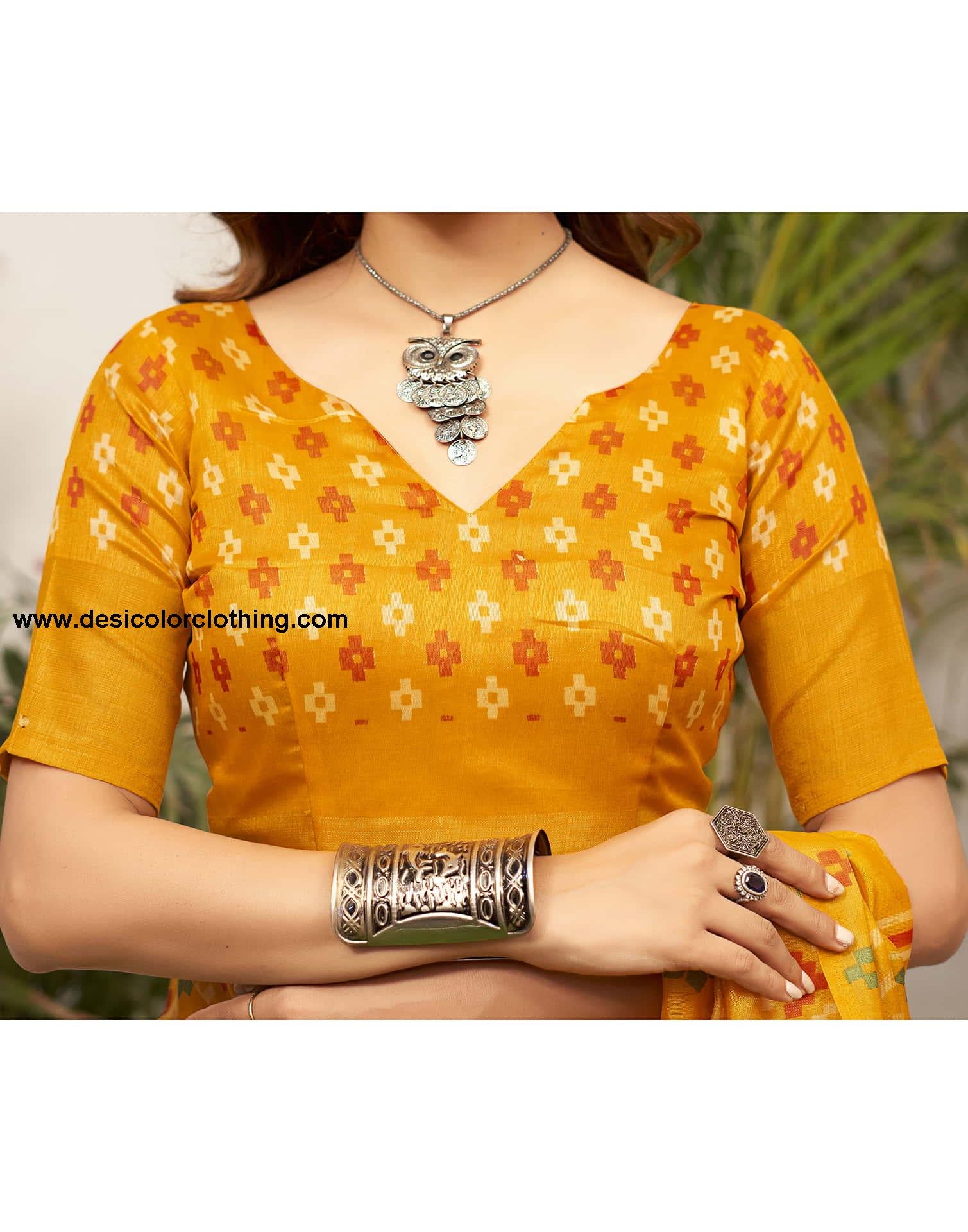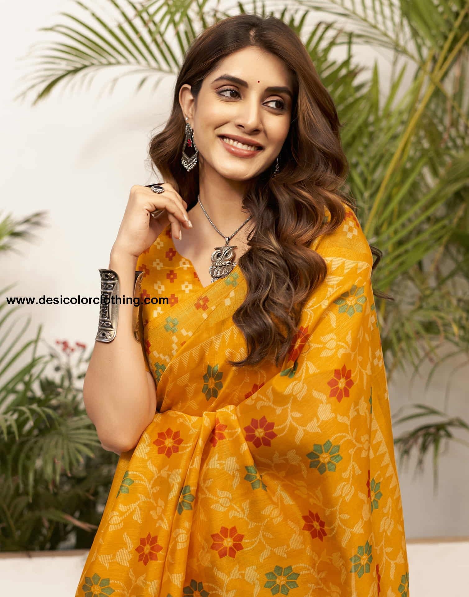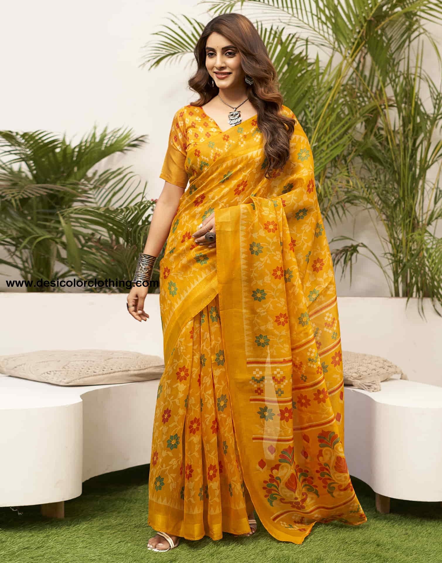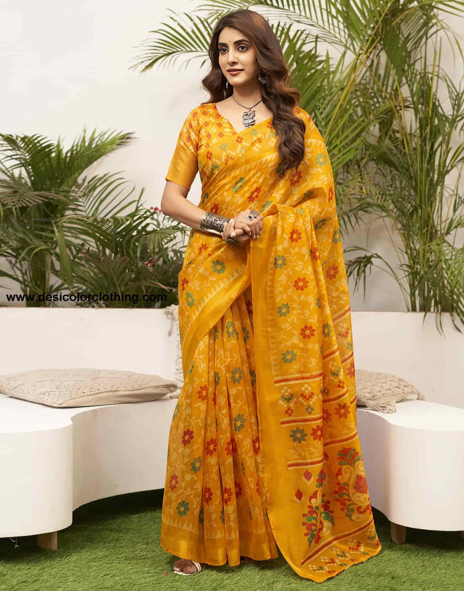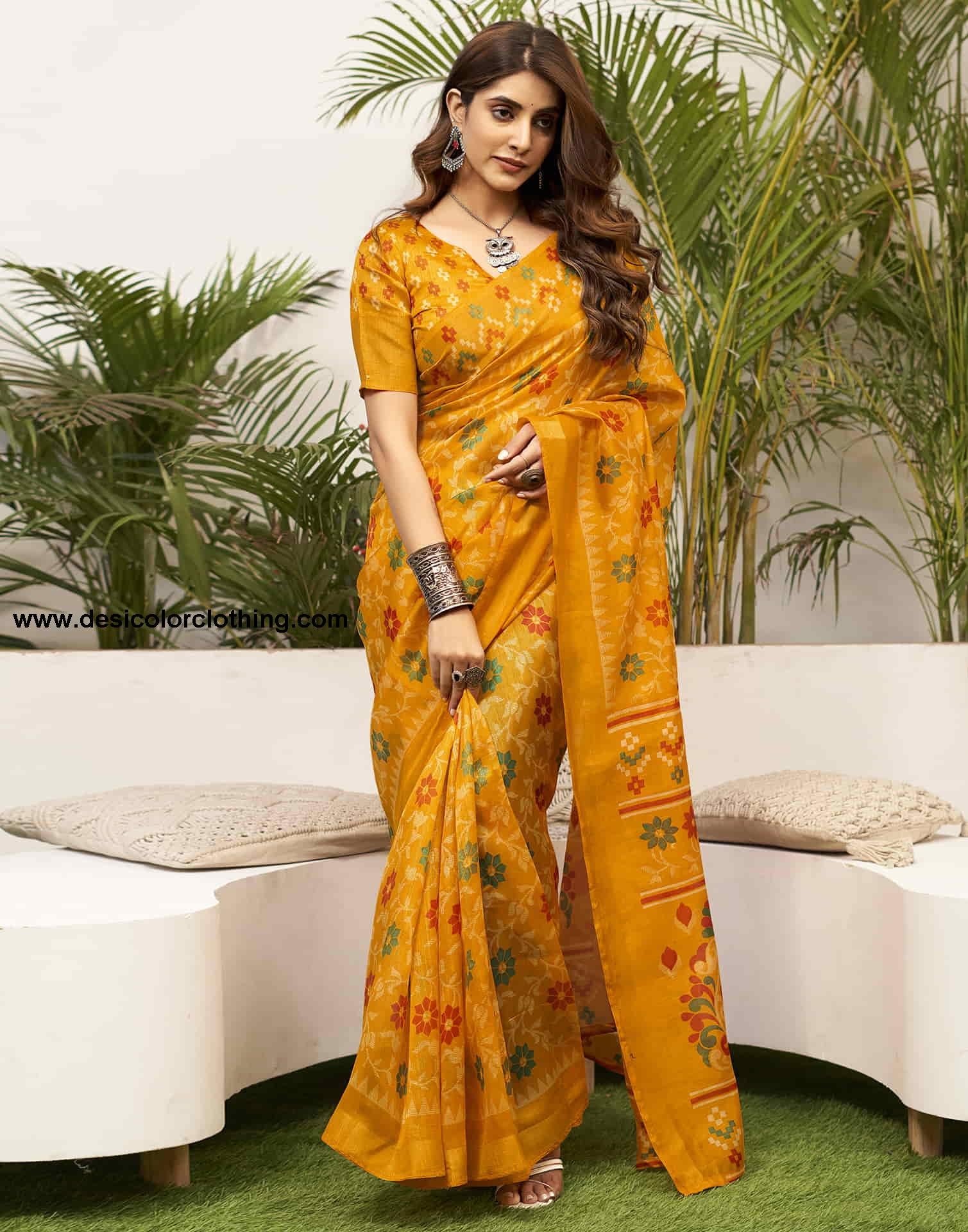 Saree Color:Turmeric Yellow, Mulitcolored Type:Printed
