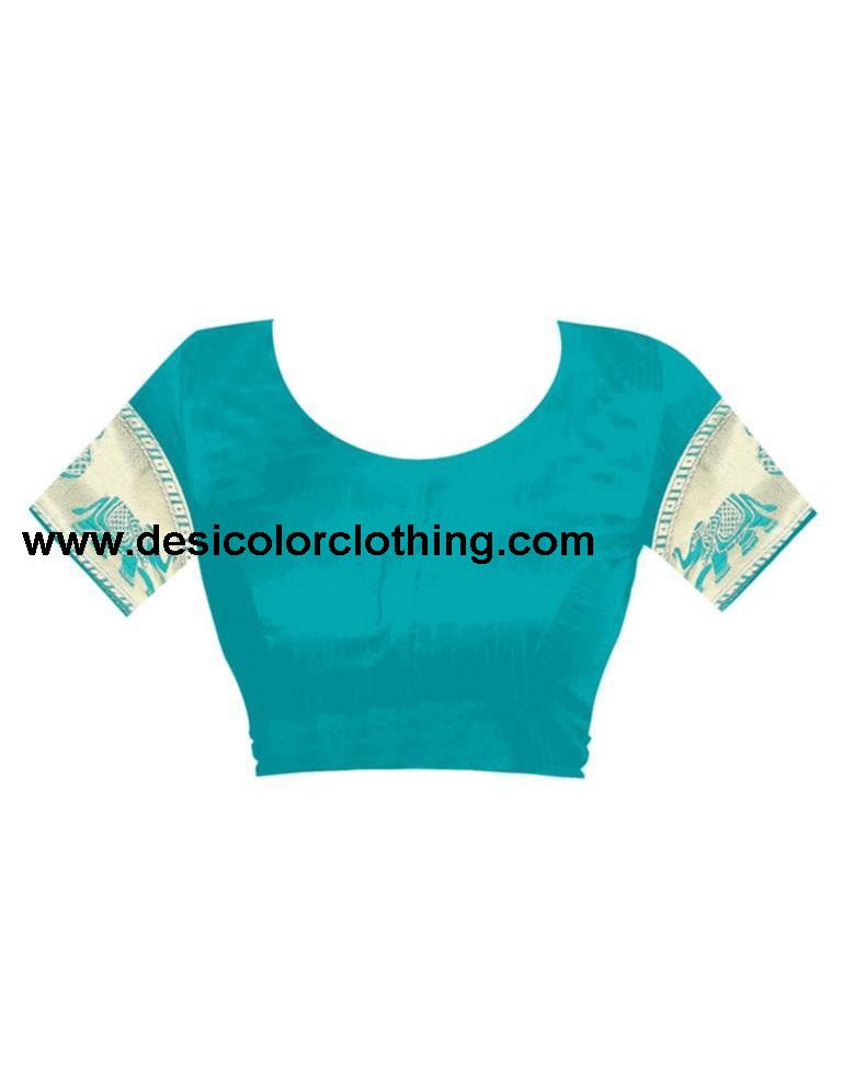 Blouse Color:Turquoise Blouse Fabric:Polysilk Blouse Length:0.80 Mtr Blouse Work:Jacquard Border, Self Woven Saree Color:Turquoies, Gold Saree Fabric:Polysilk Saree Length:5.50 Mtr Saree Work:Jacquard Type:Banarasi