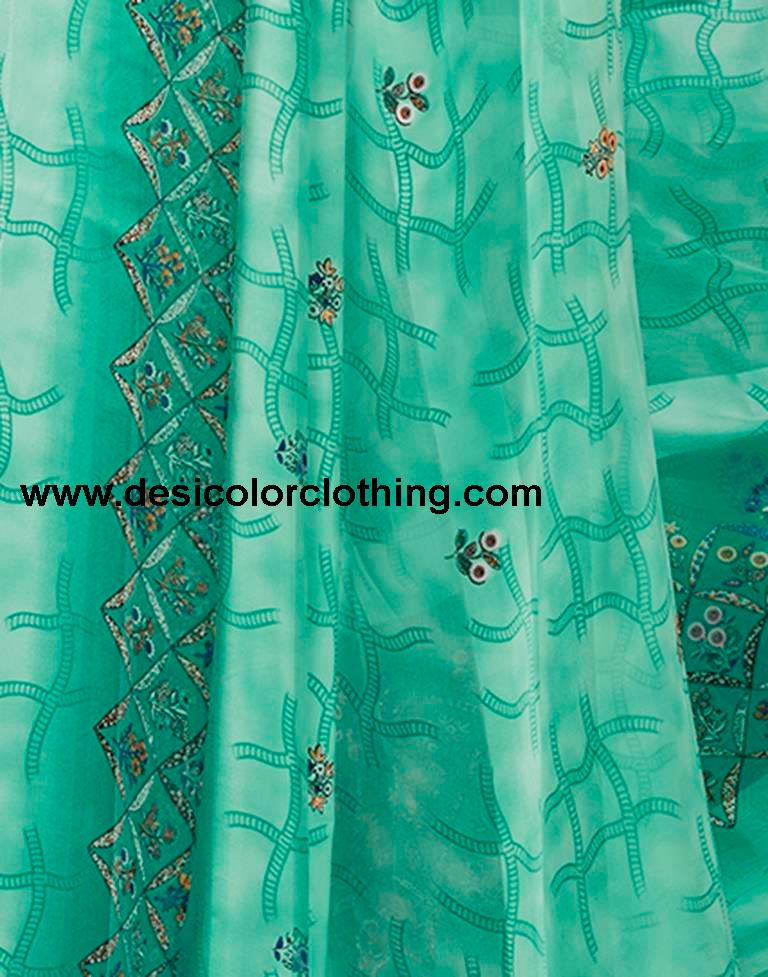 Blouse Color:Turquoise Blouse Fabric:Georgette Blouse Length:0.80 Mtr Blouse Work:Printed, Satin Patta Saree Color:Turquoise Saree Fabric:Georgette Saree Length:5.50 Mtr Saree Work:Printed, Satin Patta