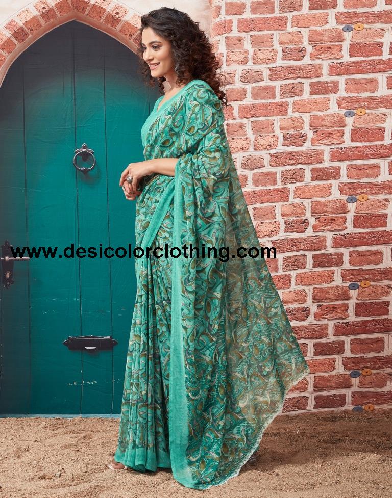 Turquoise Georgette Printed Sarees