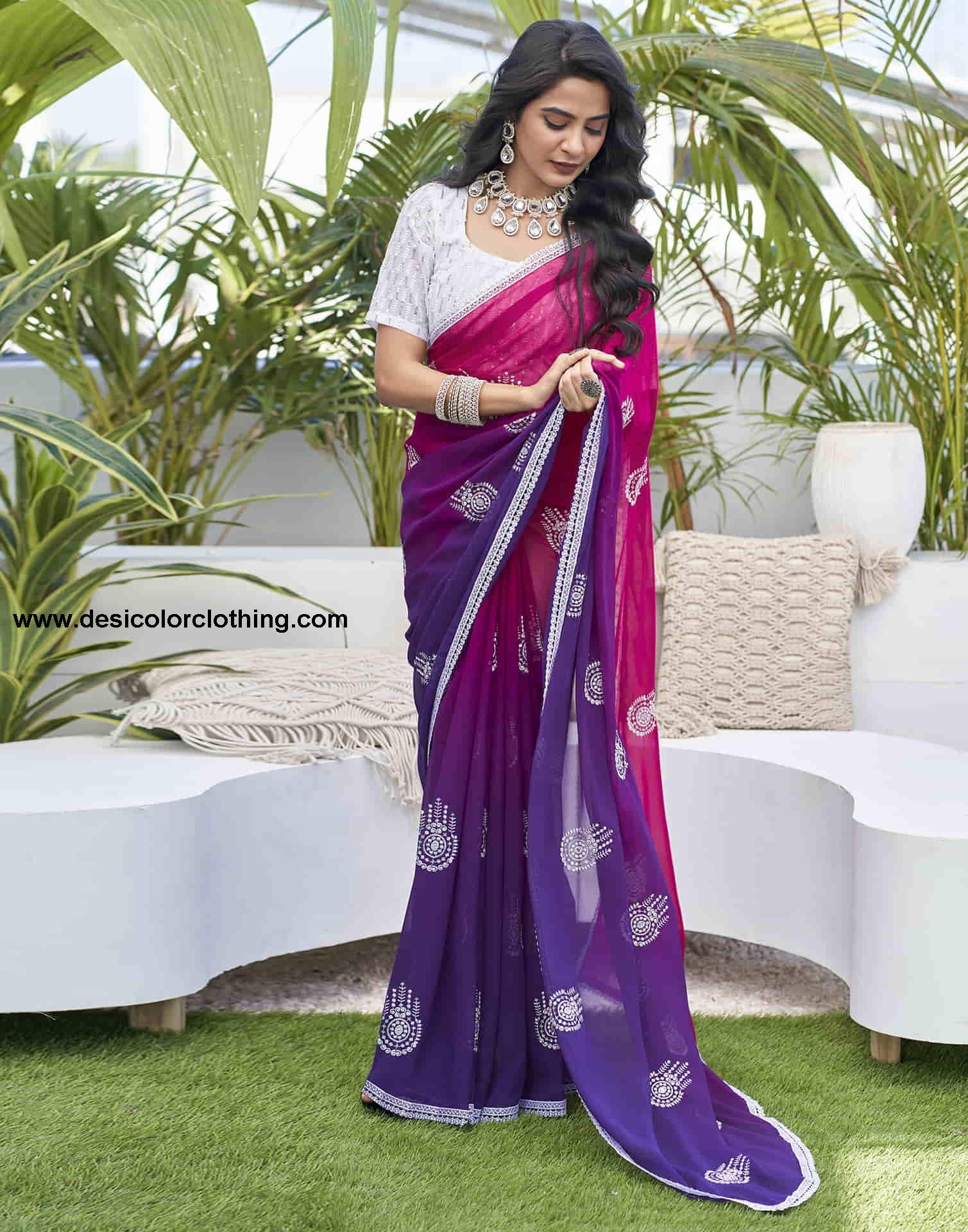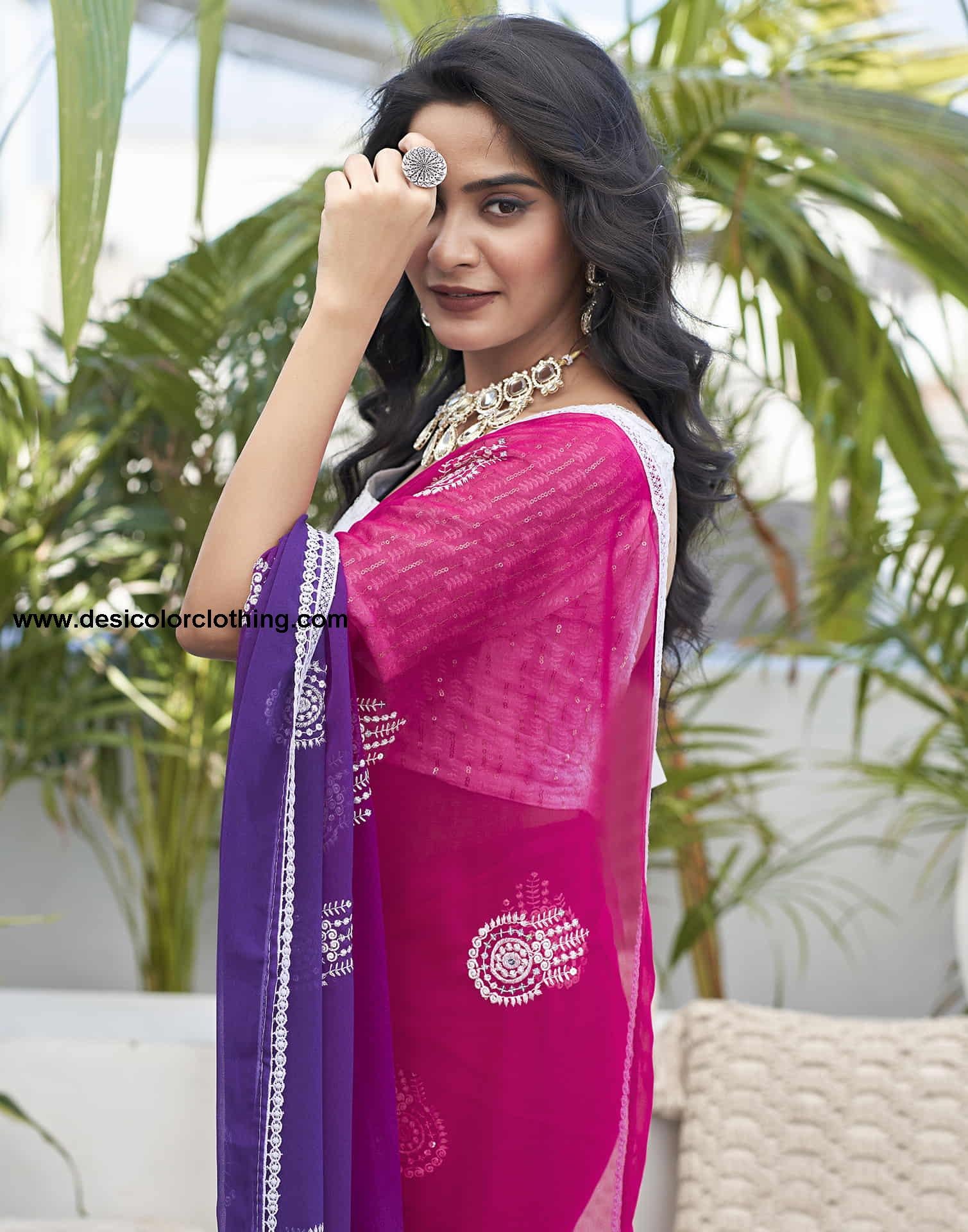 Saree Color:Violet, Dark Pink, White Type:Embellished
