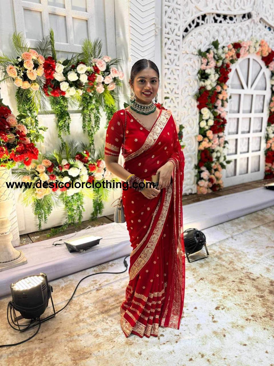 *Viscose Georgette Saree With Contrast Viscose Georgette Stich Blouse Size Up To 42*
