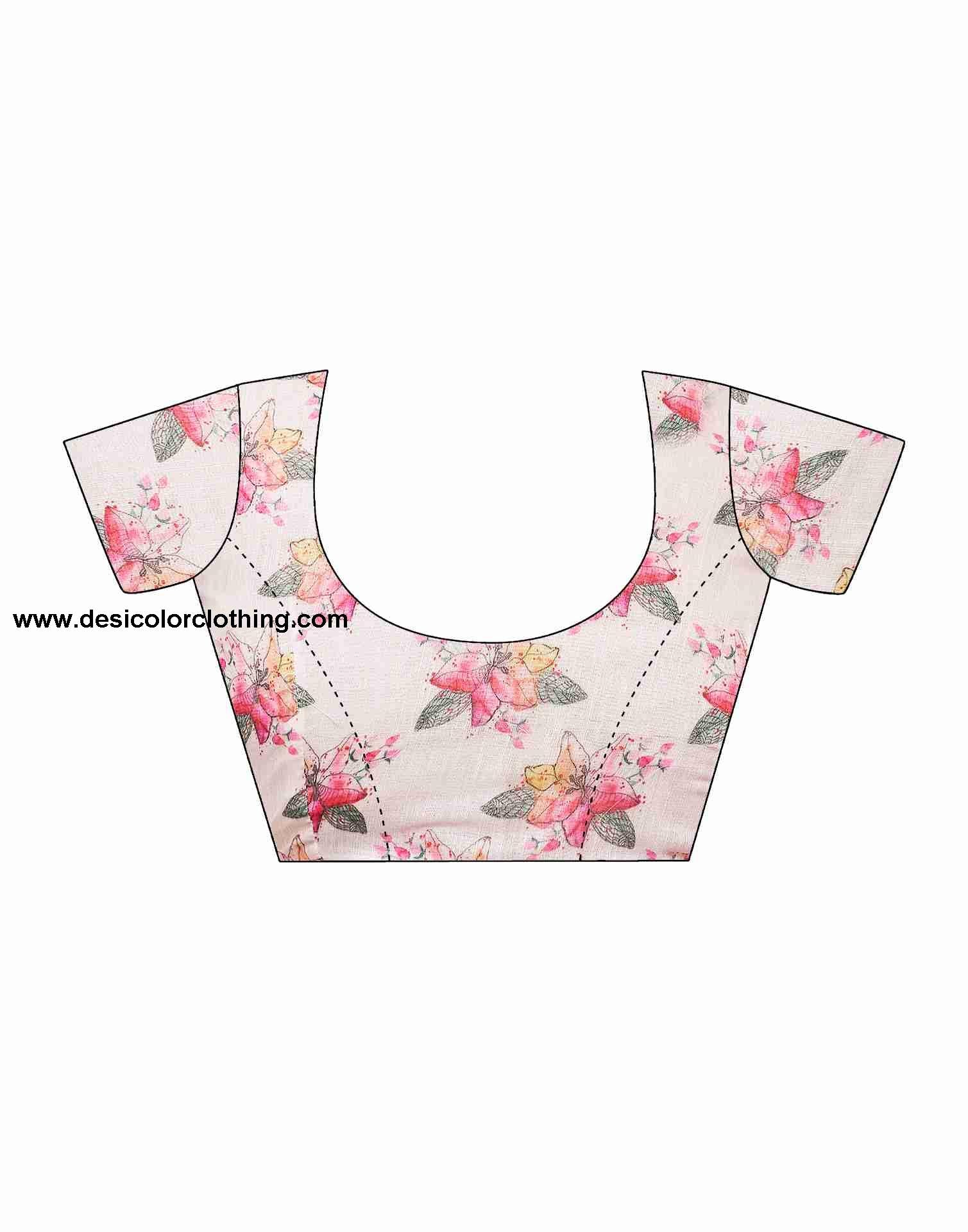 Blouse Color:White, Multi Blouse Fabric:Cotton Silk Blouse Length:0.70 Mtr Blouse Work:Floral Printed Saree Color:White, Multi Saree Fabric:Cotton Silk Saree Length:5.30 Mtr Saree Work:Floral Printed, Tassels