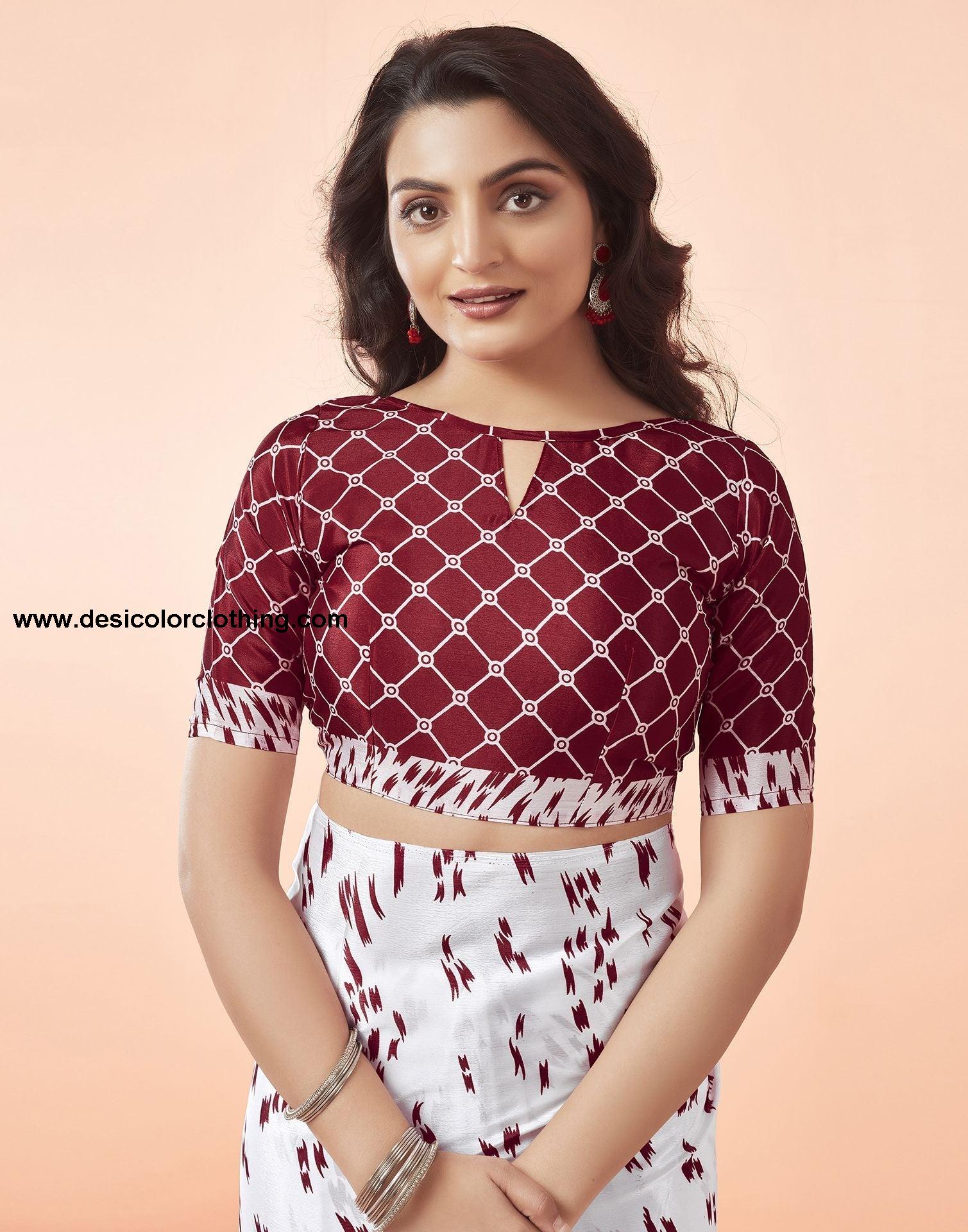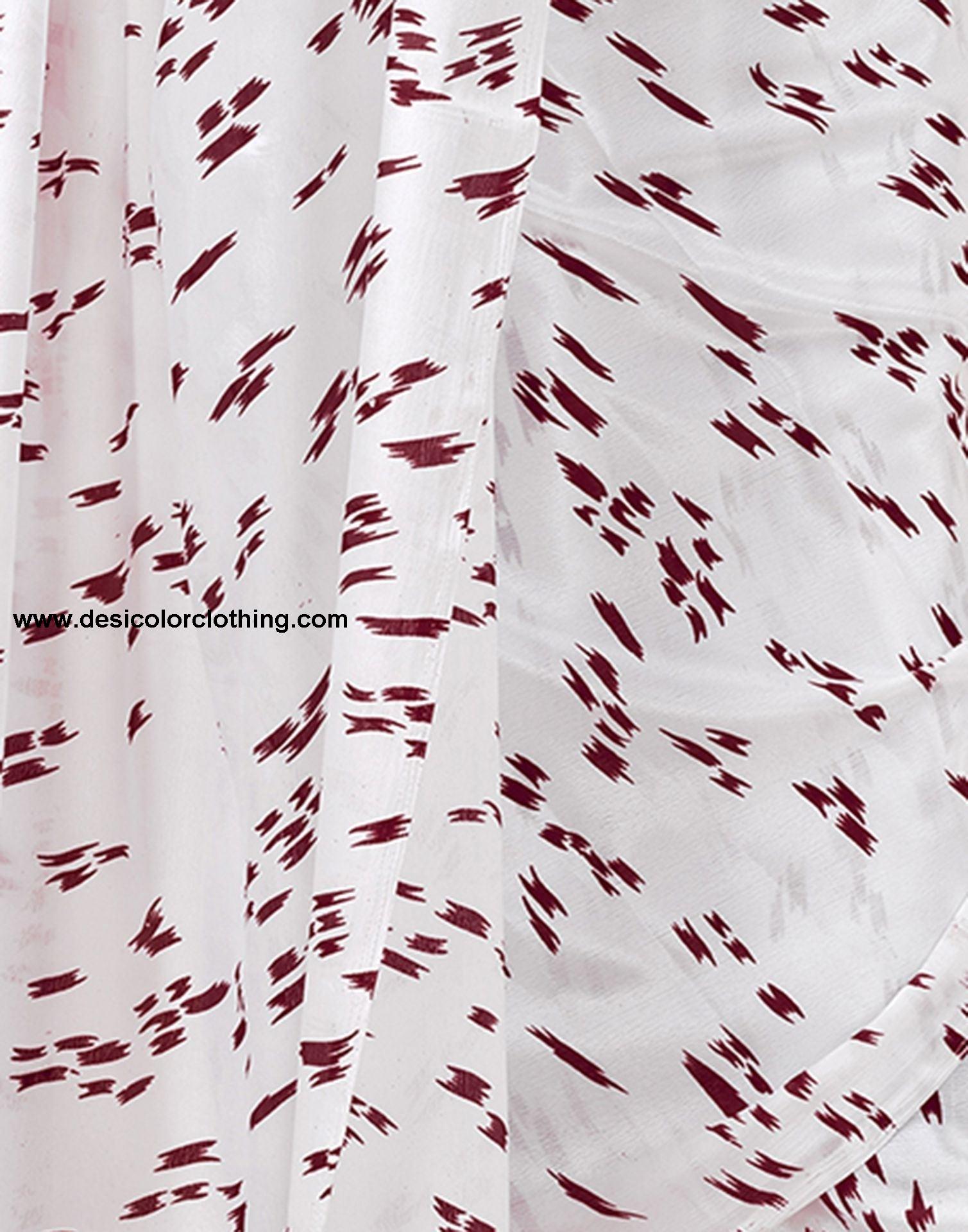 Blouse Color:Maroon Blouse Fabric:Chinnon Chiffon Blouse Length:0.80 Mtr Blouse Work:Plain, Printed Saree Color:White Saree Fabric:Chinnon Chiffon Saree Length:5.50 Mtr Saree Work:Printed