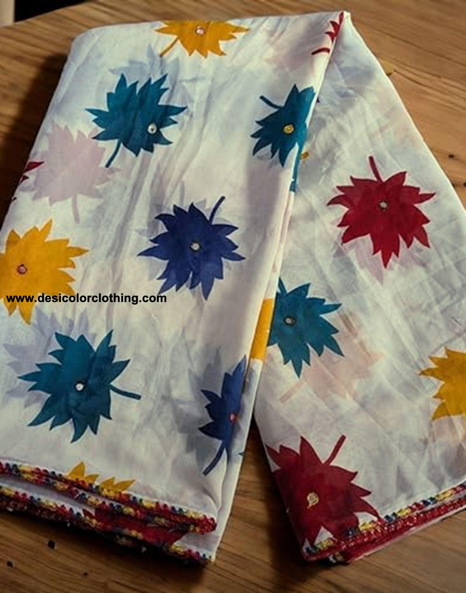 Blouse Color:Maroon, Red Blouse Fabric:Georgette Blouse Length:0.80 Mtr Blouse Work:Printed Saree Color:White Saree Fabric:Georgette Saree Length:5.50 Mtr Saree Work:Floral Printed