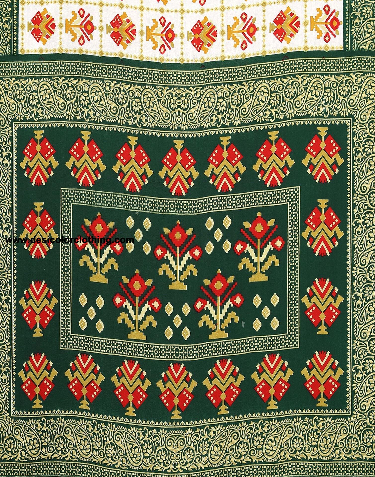 Blouse Color:Green Blouse Fabric:Georgette (Renial) Blouse Length:0.80 Mtr Blouse Work:Printed Saree Color:White Saree Fabric:Georgette (Renial) Saree Length:5.30 Mtr Saree Work:Printed