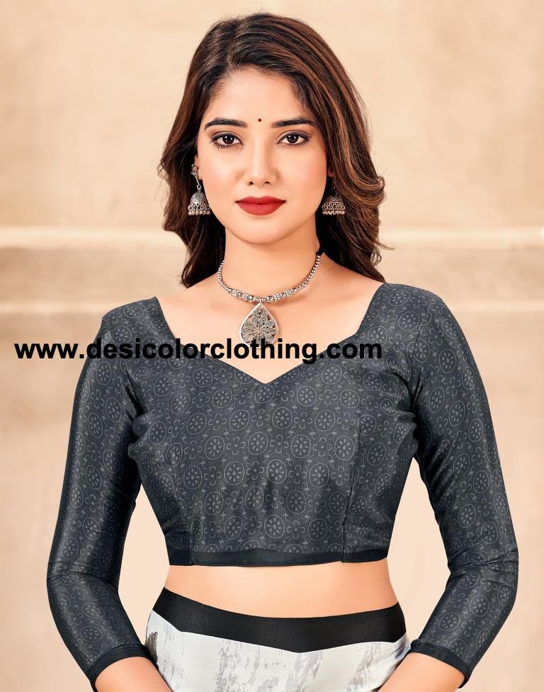 Blouse Color:Steel Grey Blouse Fabric:Silk Crepe Blouse Length:0.80 Mtr Blouse Work:Printed Saree Color:White, Grey, Beige Saree Fabric:Silk Crepe Saree Length:5.50 Mtr Saree Work:Printed