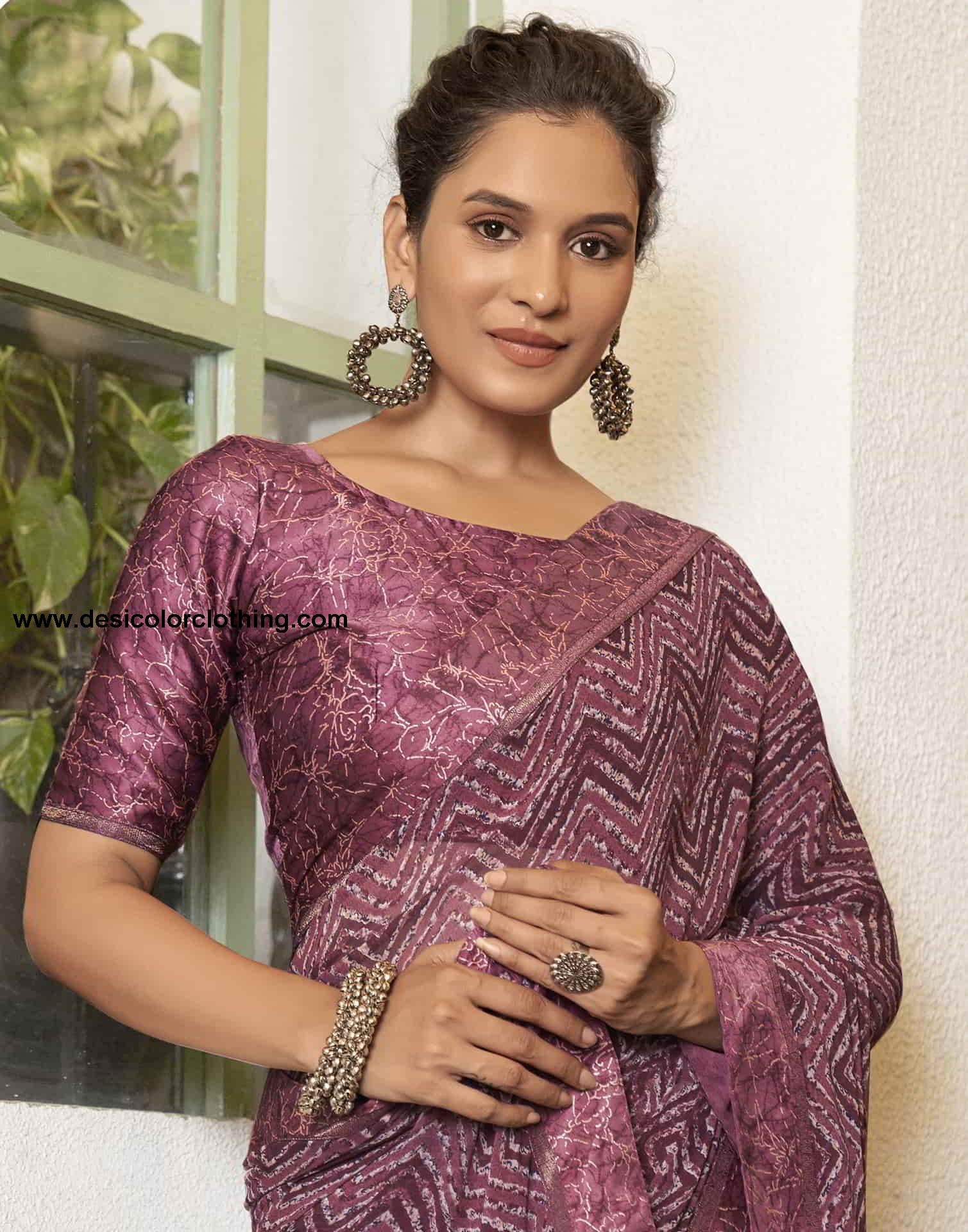 Blouse Color:Wine, Golden Blouse Fabric:Satin Blouse Length:0.80 Mtr Blouse Work:Printed, Foil Print, Lace Saree Color:Wine, Multi Saree Fabric:Georgette Saree Length:5.50 Mtr Saree Work:Geometric Printed, Lace