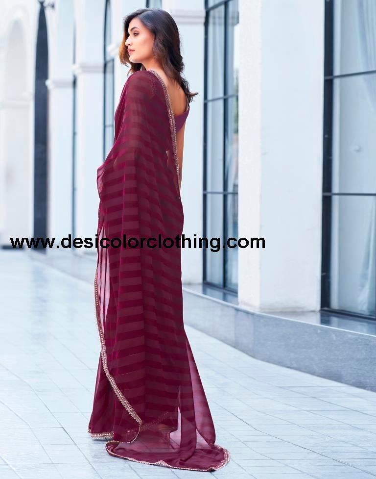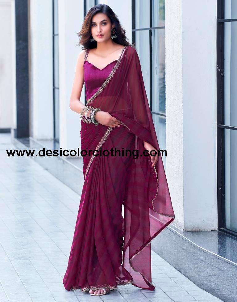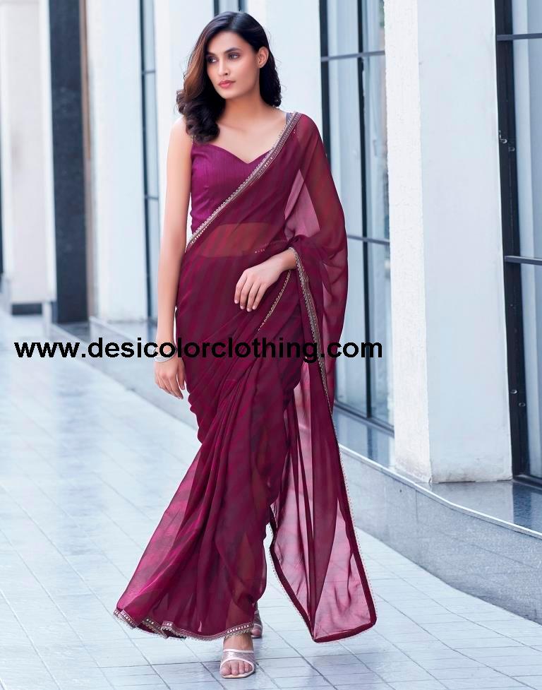 Blouse Color:Dark Magenta Blouse Fabric:Benglori Silk (Art Silk) Blouse Length:0.80 Mtr Blouse Work:Plain, Lace Saree Color:Wine Saree Fabric:Georgette Saree Length:5.50 Mtr Saree Work:Printed, Lace