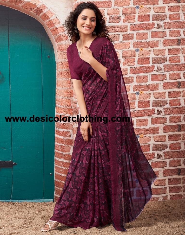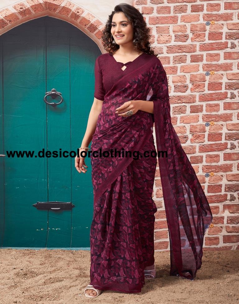 Blouse Color:Wine Blouse Fabric:Georgette Blouse Length:0.70 Mtr Blouse Work:Printed Saree Color:Wine Saree Fabric:Georgette Saree Length:5.30 Mtr Saree Work:Geometric Printed