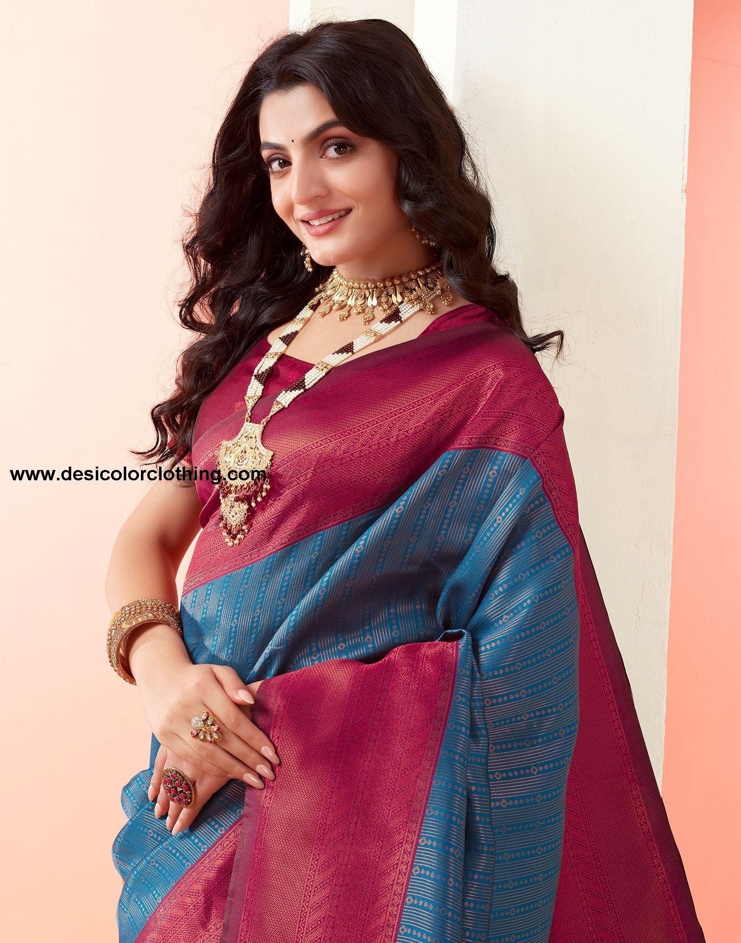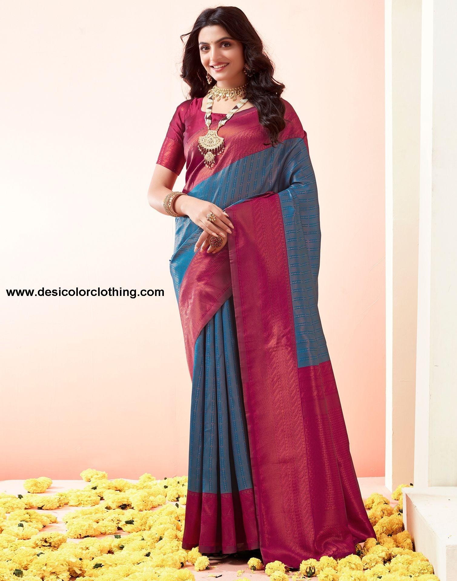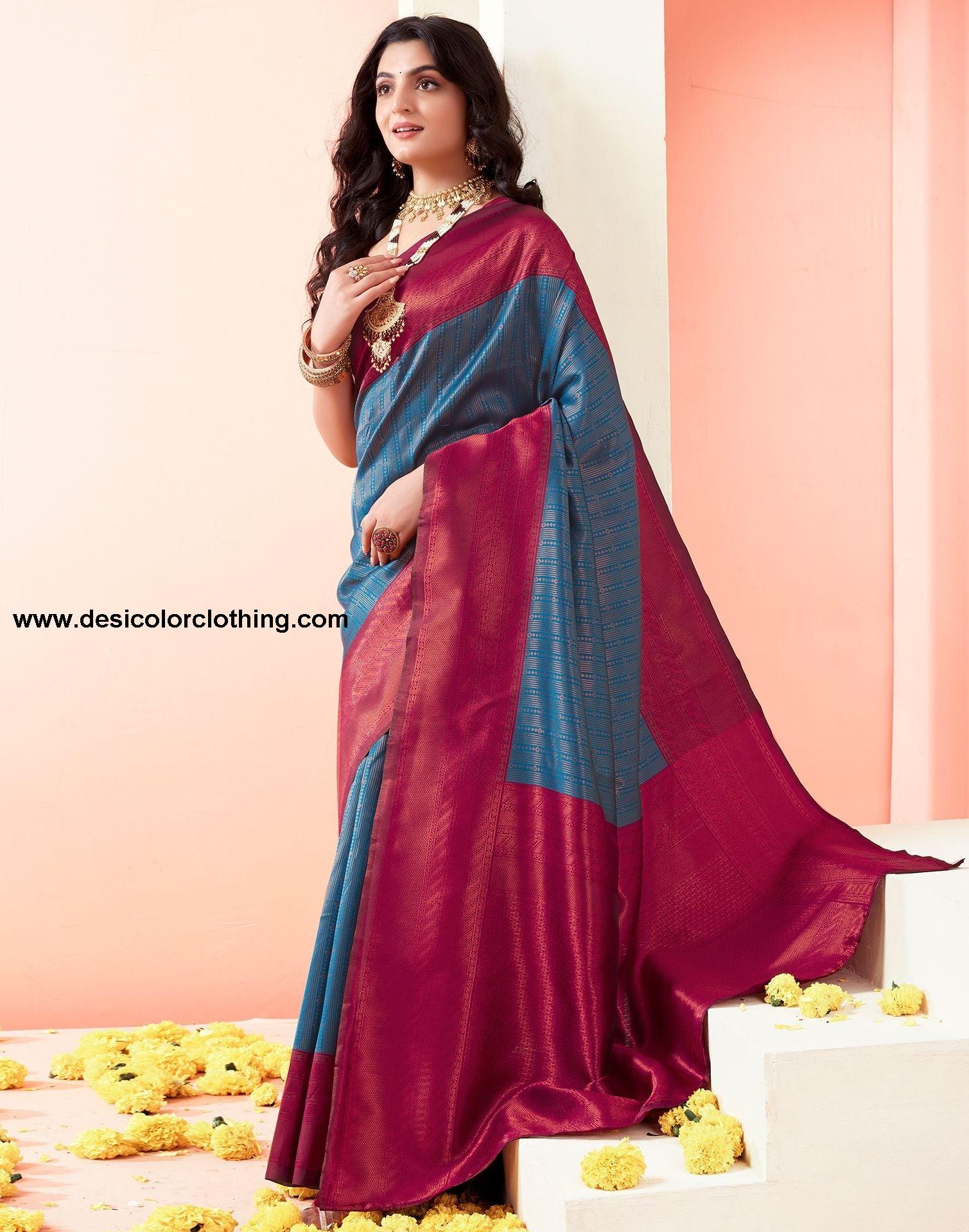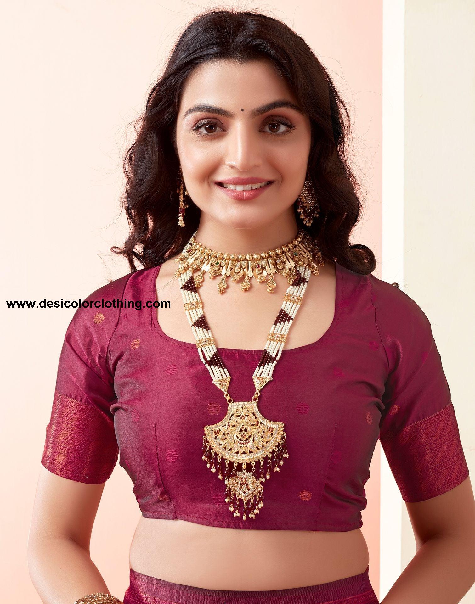 Blouse Color:Wine Blouse Fabric:Art Silk Blouse Length:0.80 Mtr Blouse Work:Jacquard Saree Color:Wine, Copper Saree Fabric:Art Silk Saree Length:5.50 Mtr Saree Work:Jacquard