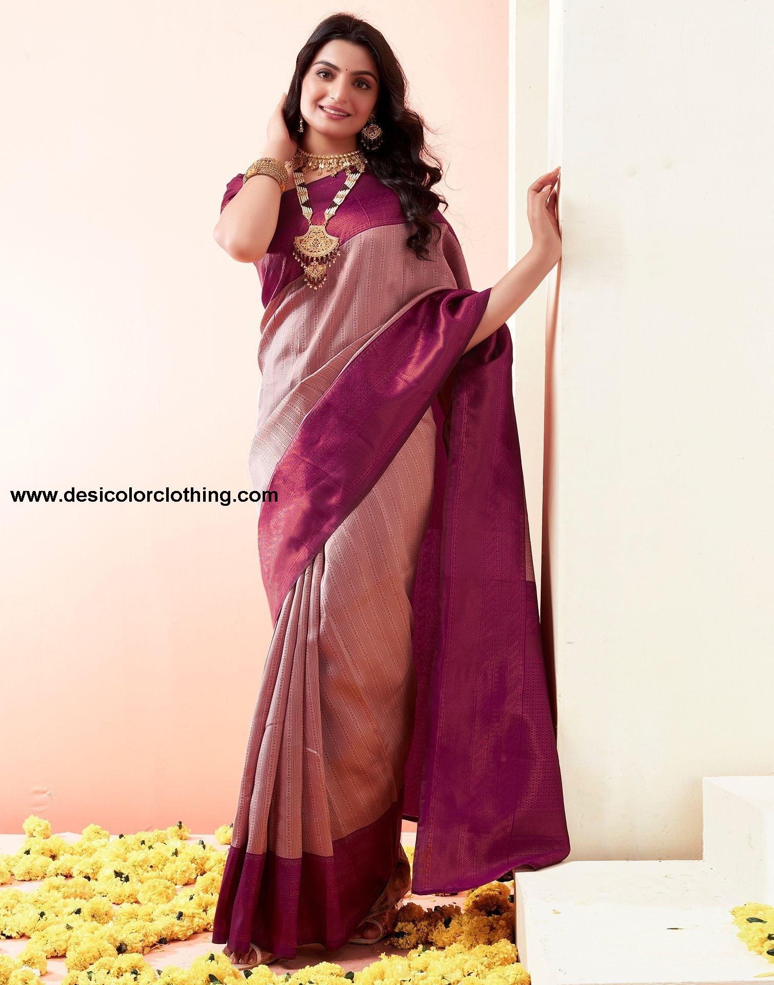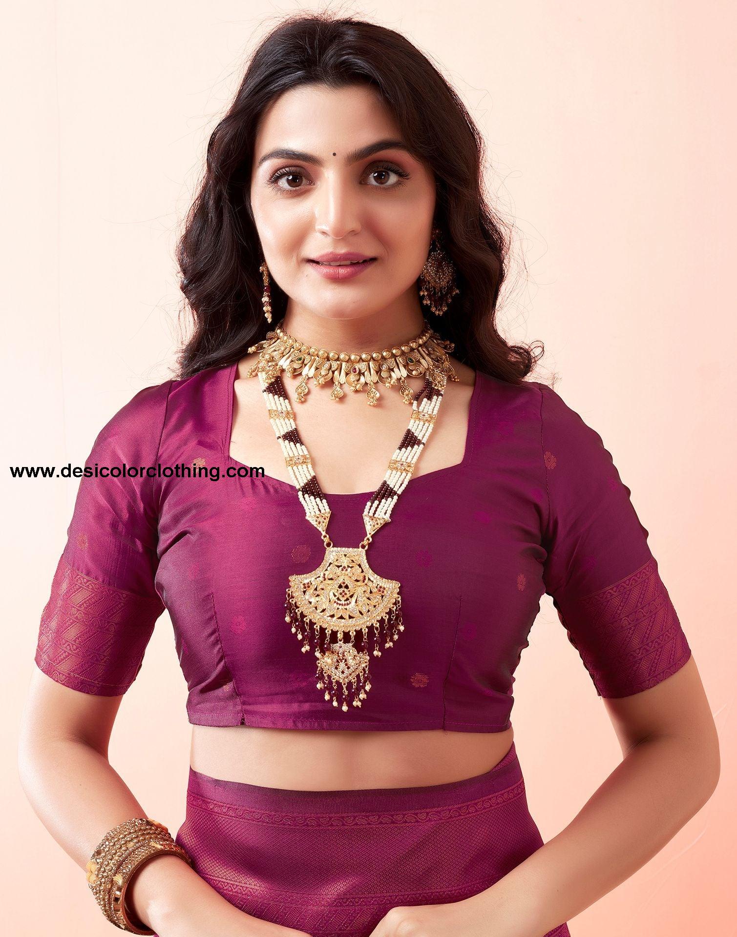 Blouse Color:Wine Blouse Fabric:Art Silk Blouse Length:0.80 Mtr Blouse Work:Jacquard Saree Color:Wine, Copper Saree Fabric:Art Silk Saree Length:5.50 Mtr Saree Work:Jacquard