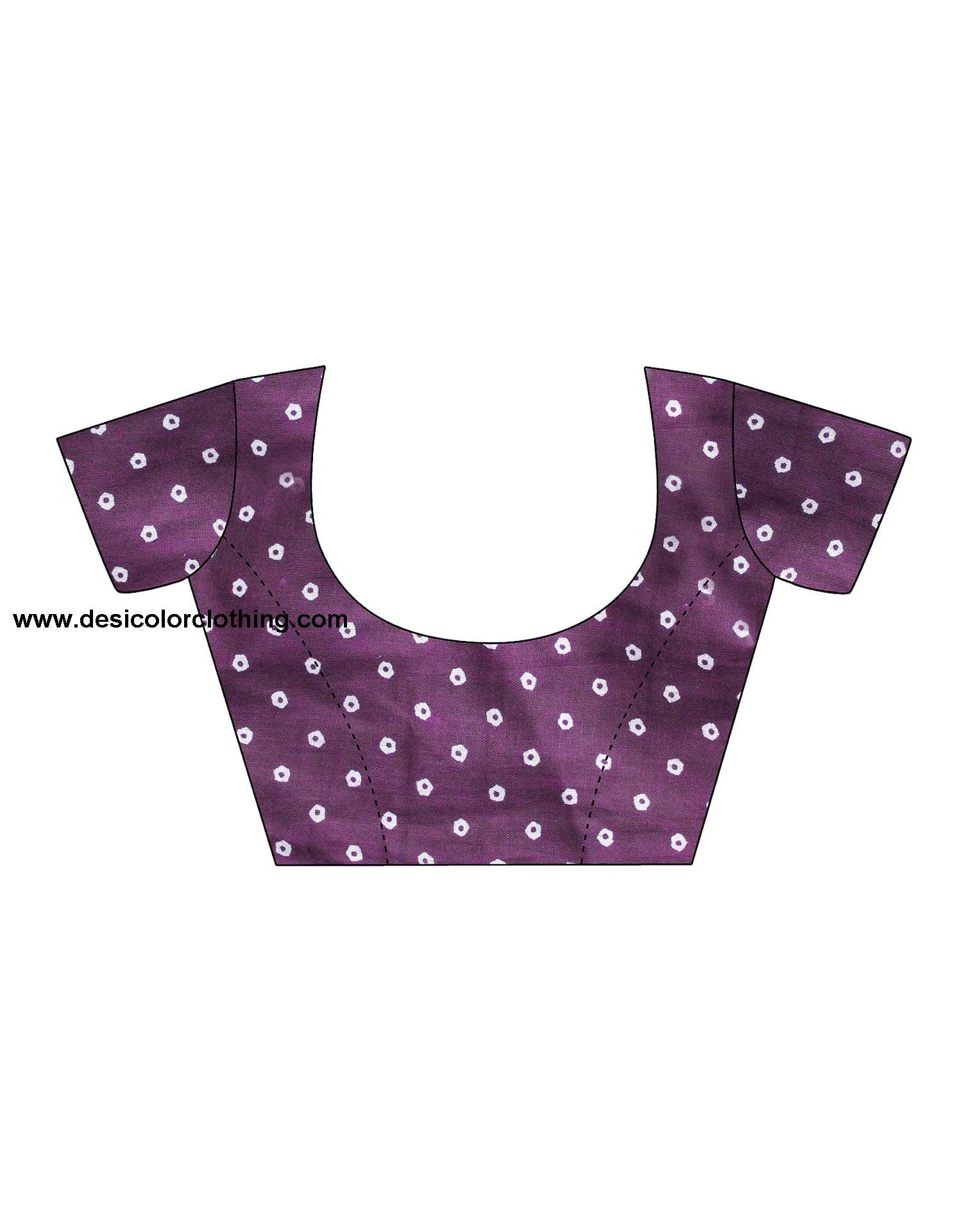 Blouse Color:Wine, White Blouse Fabric:Cotton Blouse Length:0.70 Mtr Blouse Work:Bandhani Printed Saree Color:Wine, White Saree Fabric:Cotton Saree Length:5.30 Mtr Saree Work:Leheriya Printed Type:Printed
