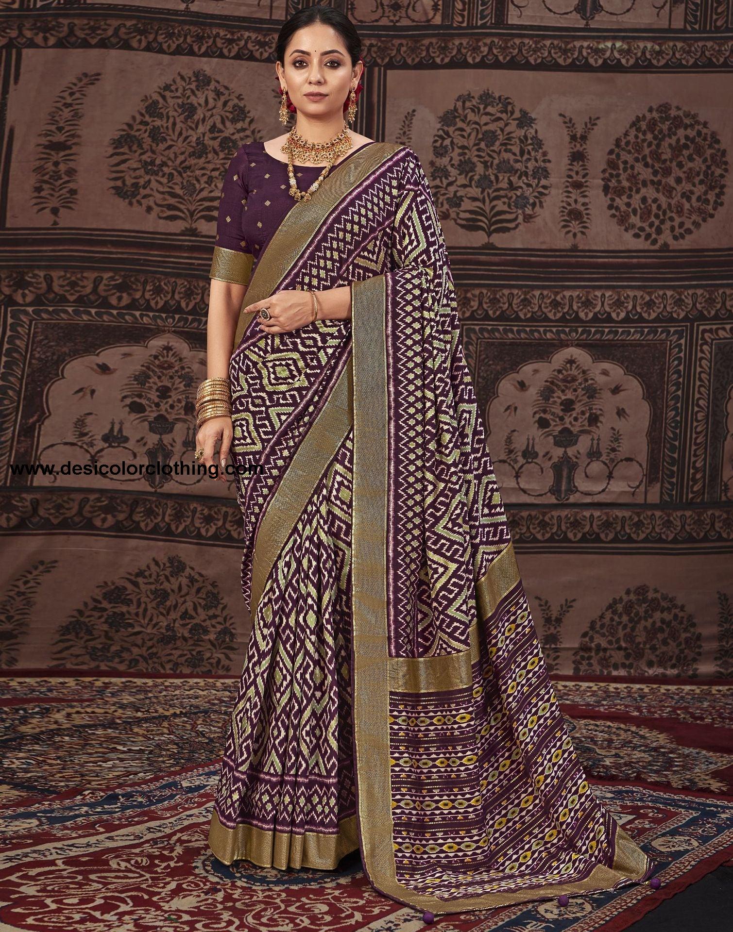 Blouse Color:Wine Blouse Fabric:Dola Silk Blouse Length:0.80 Mtr Blouse Work:Printed Saree Color:Wine, Multicoloured Saree Fabric:Dola Silk Saree Length:5.50 Mtr Saree Work:Printed