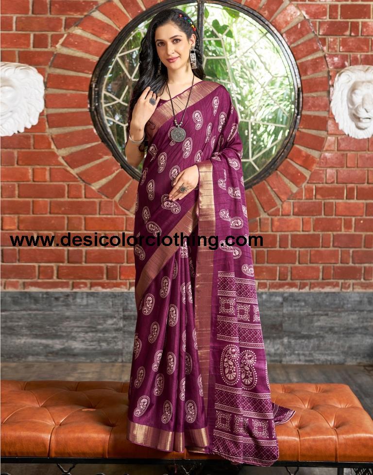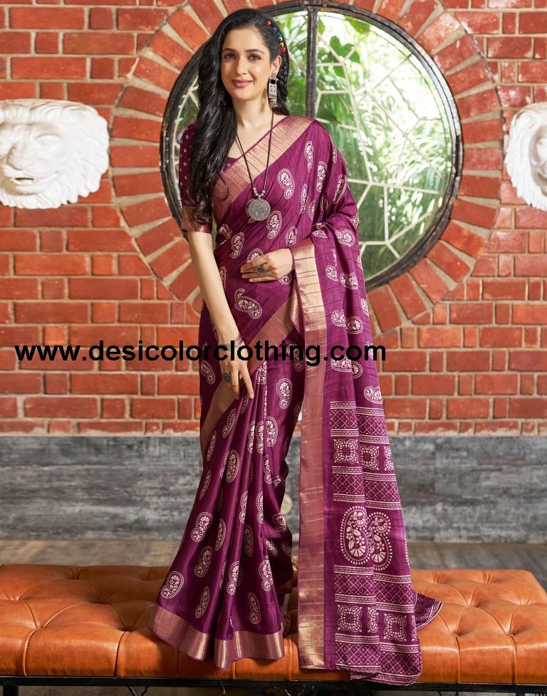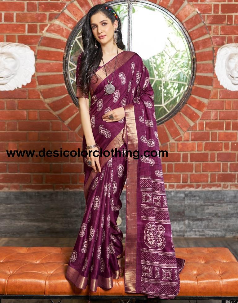 Blouse Color:Wine, White Blouse Fabric:Silk Blouse Length:0.70 Mtr Blouse Work:Floral Printed, Zari Border Saree Color:Wine, White, Brown Saree Fabric:Silk Saree Length:5.30 Mtr Saree Work:Floral Printed, Zari Border