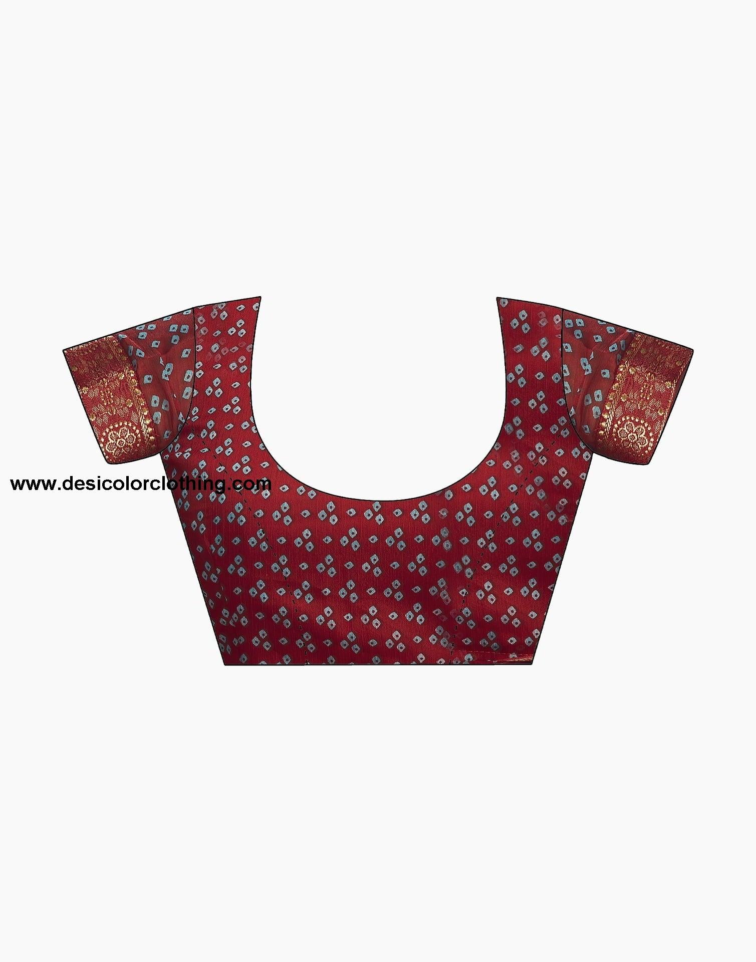 Blouse Color:Maroon, Teal Blue Blouse Fabric:Chiffon Blouse Length:0.80 Mtr Blouse Work:Bandhani Printed, Lace Saree Color:Turmeric, Maroon, Multi Saree Fabric:Chiffon Saree Length:5.30 Mtr Saree Work:Bandhani Printed, Lace, Tassels Type:Bandhani