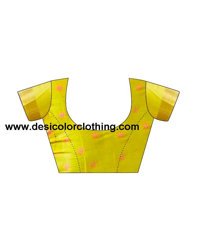 Blouse Color:Yellow, Red Blouse Fabric:Cotton Blouse Length:0.70 Mtr Blouse Work:Printed, Zari Stripe, Zari Border Saree Color:Yellow, Red Saree Fabric:Cotton Saree Length:5.30 Mtr Saree Work:Printed, Zari Stripe, Zari Border