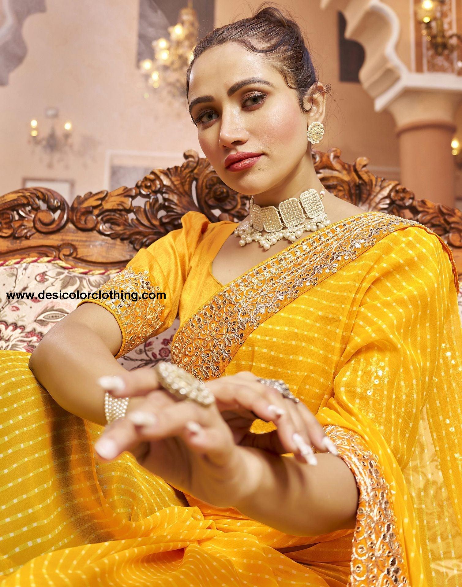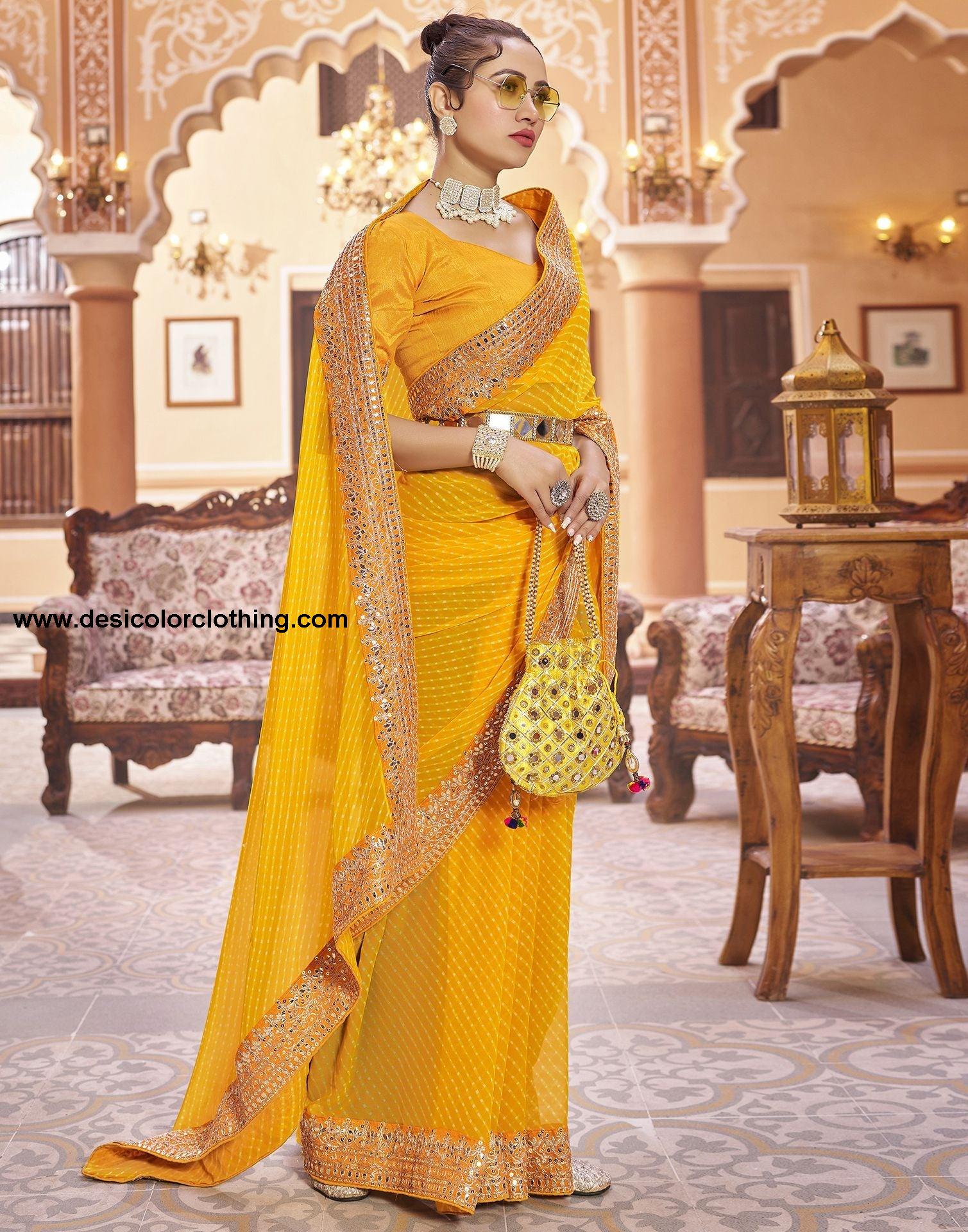 Blouse Color:Yellow Blouse Fabric:Art Silk Blouse Length:0.80 Mtr Blouse Work:Plain Saree Color:Yellow Saree Fabric:Georgette Saree Length:5.50 Mtr Saree Work:Printed