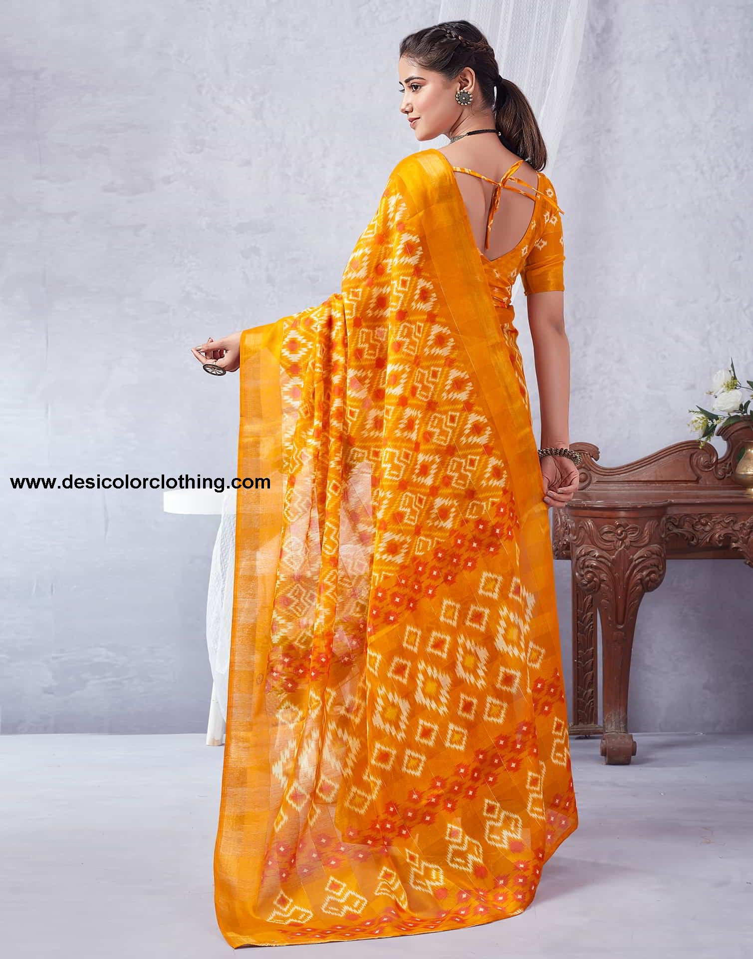 Yellow Printed Cotton Geometric Saree