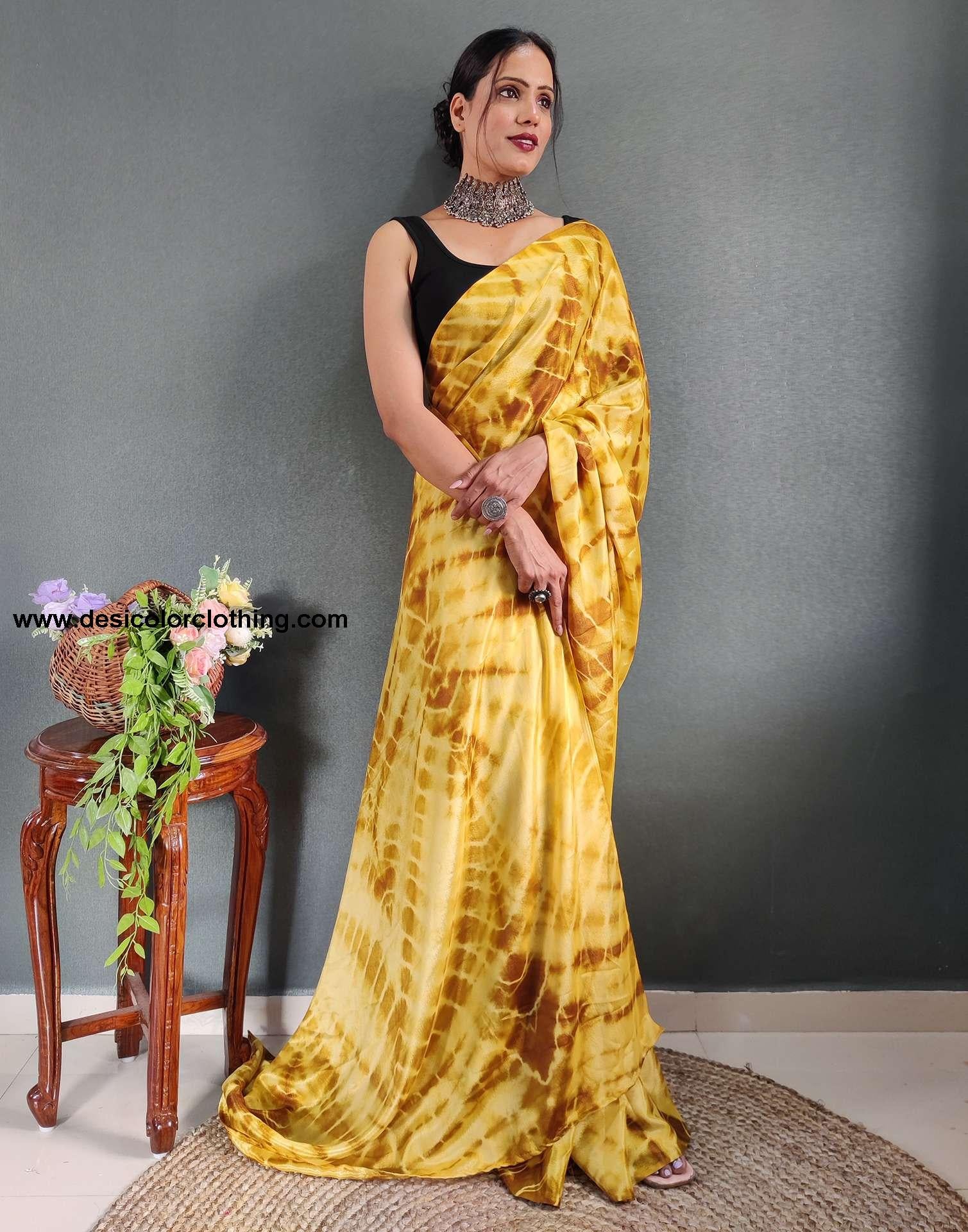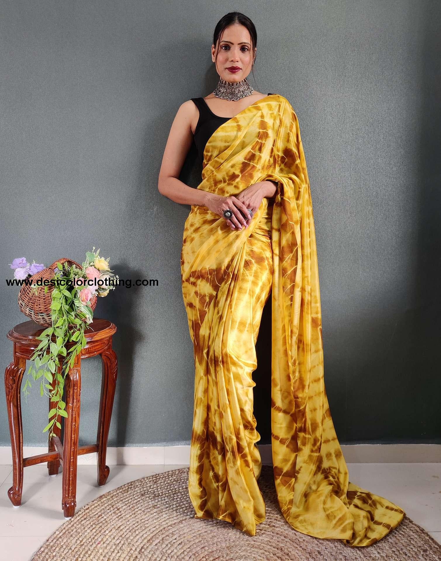 Blouse Color:Black Blouse Fabric:Banglori Silk Blouse Length:5.50 Mtr Blouse Work:Plain Saree Color:Yellow Saree Fabric:Chinon Silk Saree Length:5.50 Mtr Saree Work:Printed