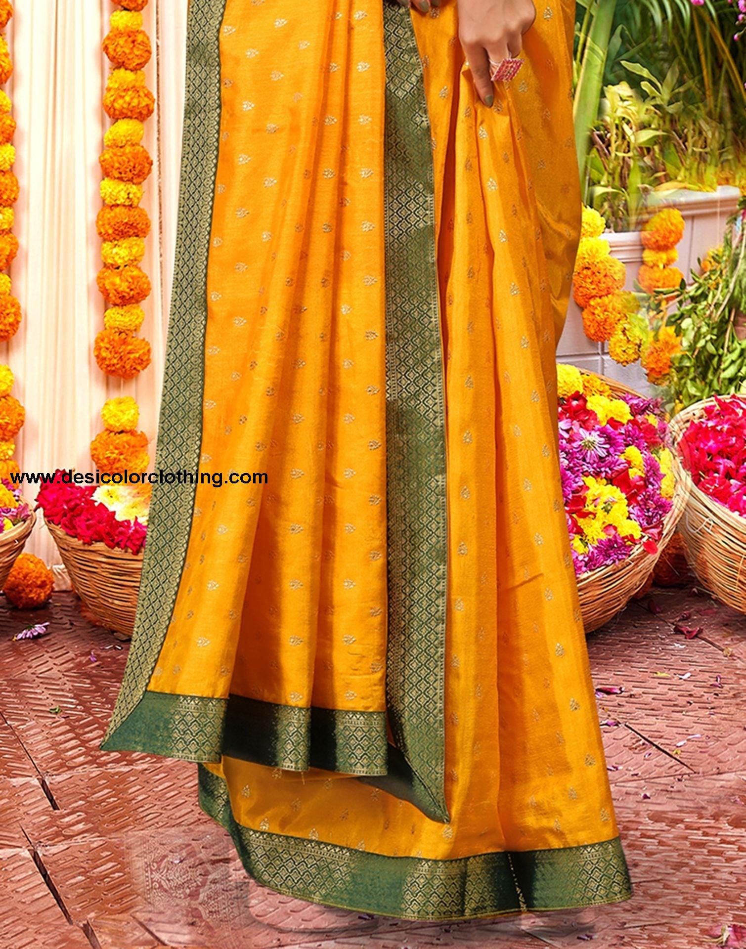 Blouse Color:Dark Green Blouse Fabric:Poly Silk Blouse Length:0.80 Mtr Blouse Work:Jacquard Saree Color:Yellow Saree Fabric:Poly Silk Saree Length:5.50 Mtr Saree Work:Plain